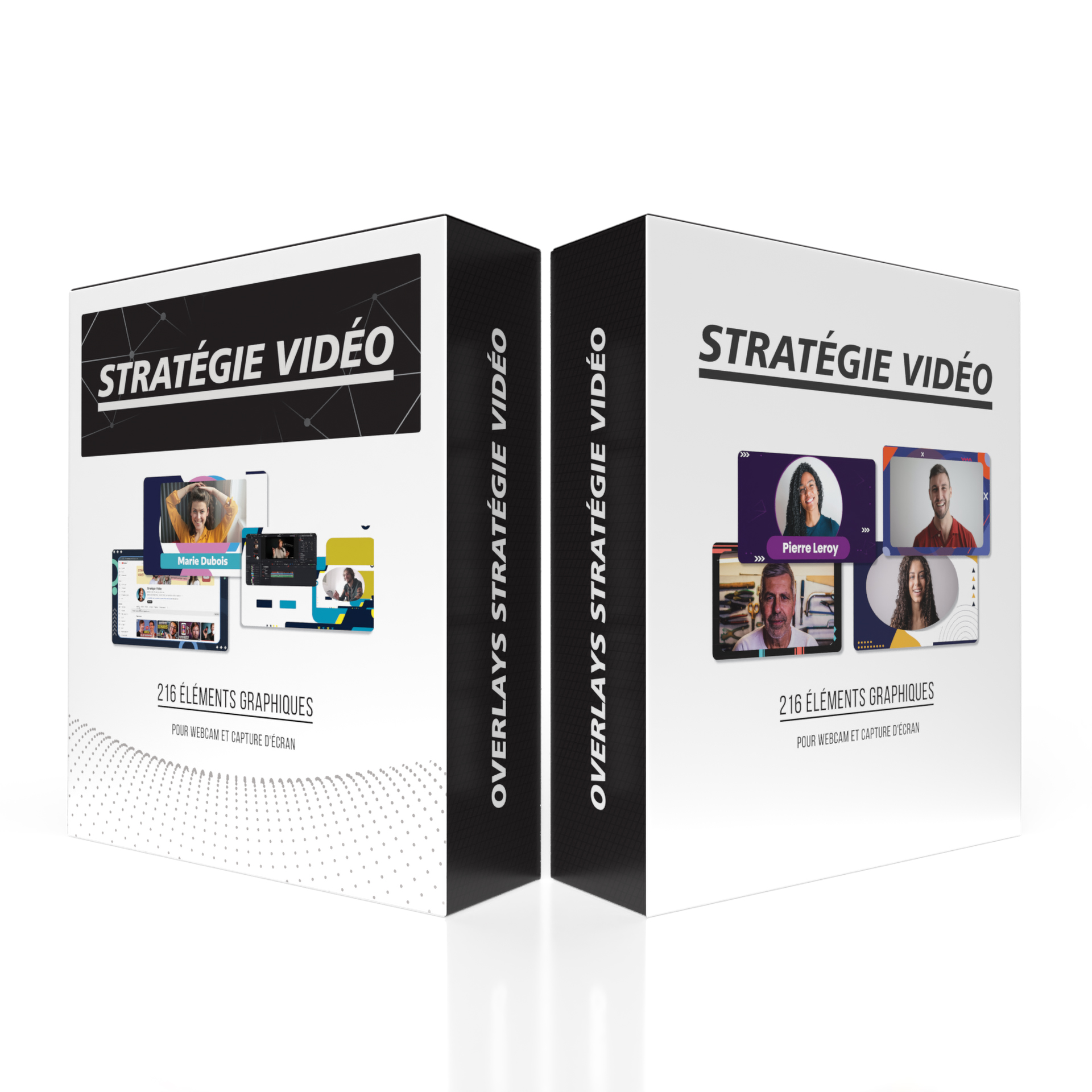 Des overlays pour le face cam, avec et sans lower third (l’encadré pour mettre ton nom et celui de ta chaîne par exemple)